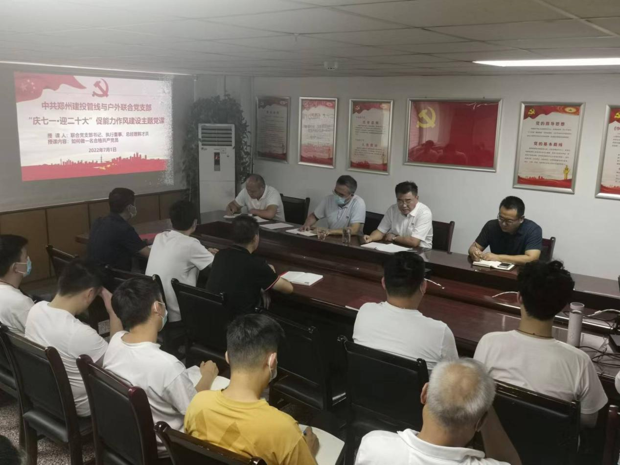 2022年7月1日,中共鄭州建投管線與戶外聯(lián)合黨支部組織全體黨員和管線公司全體干部職工,在一首《沒有共產(chǎn)黨就沒有新中國》大合唱中,建投管線與戶外聯(lián)合黨支部拉開慶祝中國共產(chǎn)黨成立101周年,迎接黨的二十大勝利主題黨日活動。