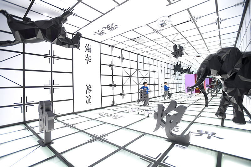 2019年9月21日,小朋友在湖南省長(zhǎng)沙市“字在其中”漢字國潮藝術(shù)展上參觀。新華社記者 陳澤國 攝
