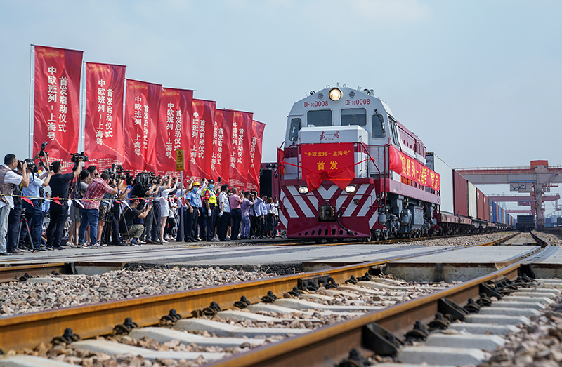 “上海號(hào)”中歐班列從上海首發(fā),駛向德國漢堡(9月28日攝)。新華社記者 丁汀 攝
